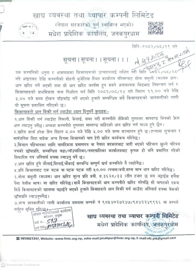 खाद्य व्यवस्था तथा व्यपार कम्पनी लि.को सुचना