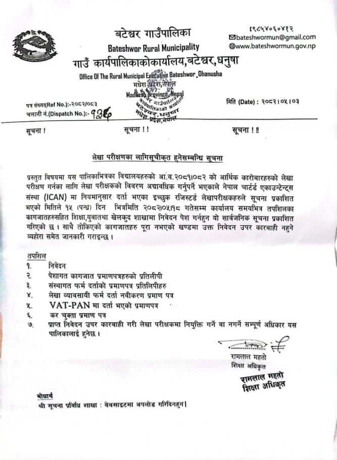 लेखा परिक्षणका लागि सुचिकृत हुने सम्बन्धी सुचना