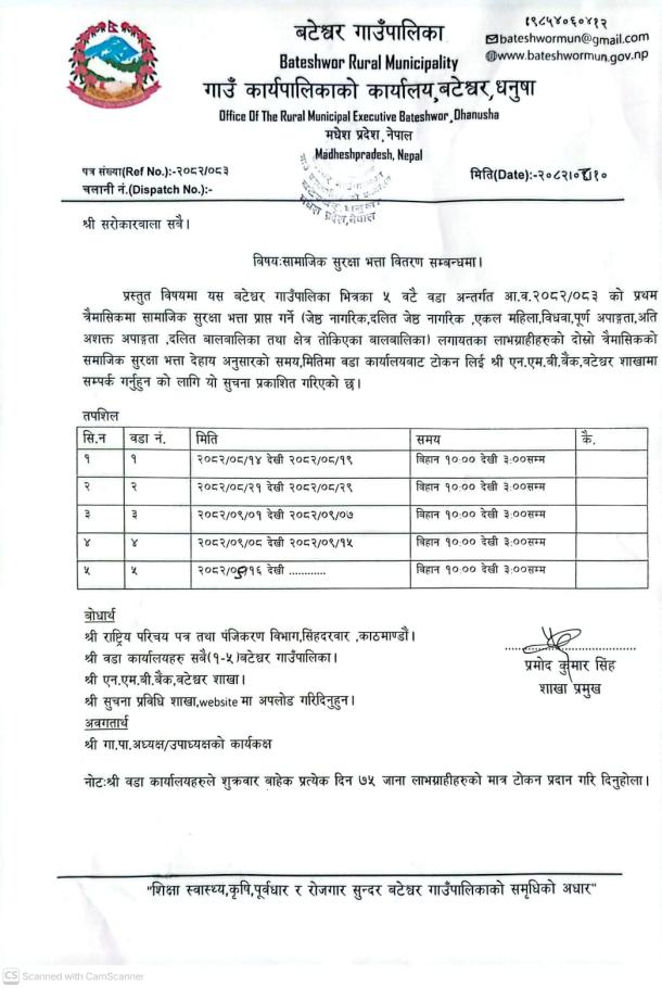 समाजिक सुरक्षा भत्ता वितरण सम्बन्धमा।