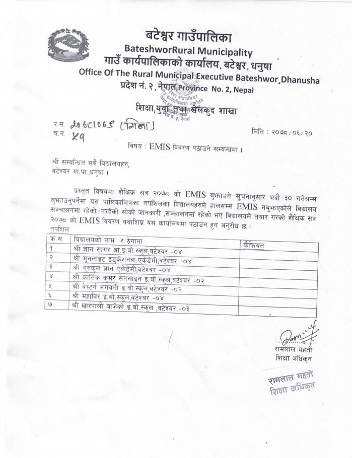 » EMIS विवरण पठाउने सम्बन्धमा