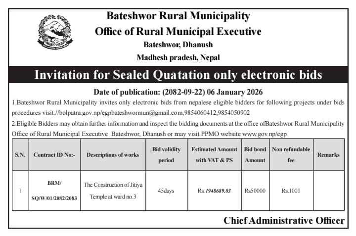 सार्वजनिक खरिद/बोलपत्र सूचना